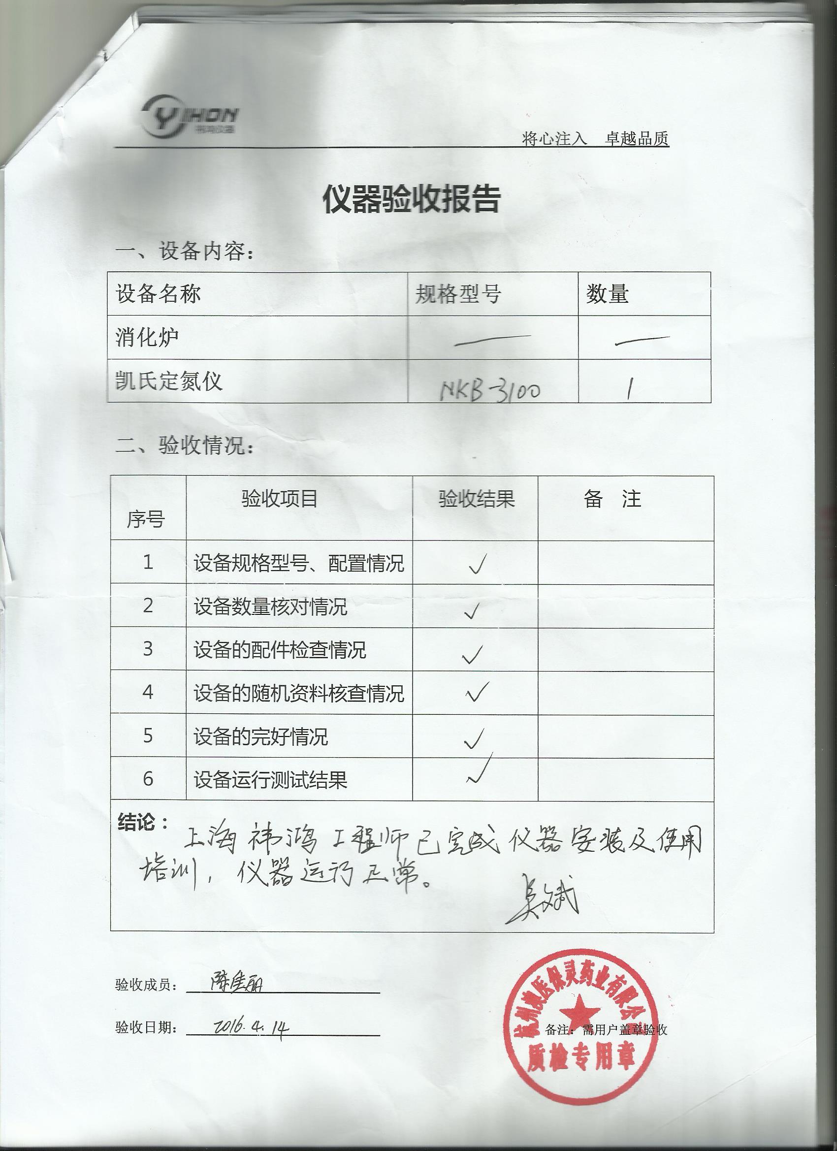 感謝您與祎鴻牽手,我們將不負(fù)眾望,更好的服務(wù)給予我們每一次機(jī)會(huì)的您。下圖是杭州保靈集團(tuán)質(zhì)檢部驗(yàn)收報(bào)告。