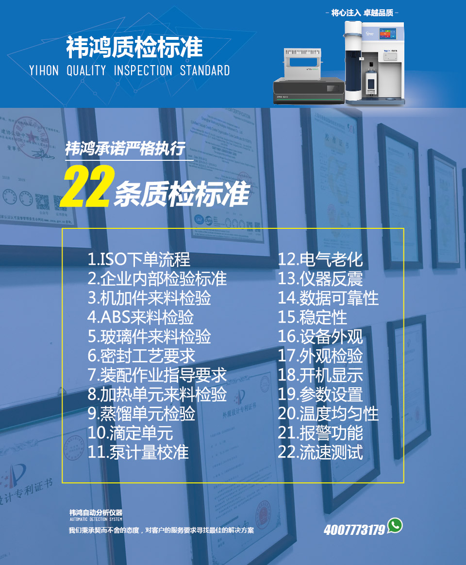 上海祎鴻分析儀器有限公司由分析化學行業資深團隊凝聚而成。從2000年起就致力于智能化化學分析儀器的研究開發。經歷16年的經驗探索,得到分析化學行業使用用戶的高度評價,智能一體化指標達到國內先進水平。